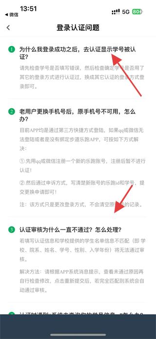 3、登錄后若遇到登錄認證問題,可查看登錄認證問題頁面的常見問題,如學號被認請、老用戶更換手機號等,了解問題解決方法,保障賬號使用。