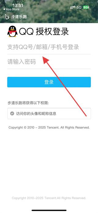 2、在登錄頁面選擇QQ登錄,進入QQ授權登錄頁面,輸入QQ賬號密碼,完成登錄操作,獲取軟件使用權限,開啟運動數據記錄。