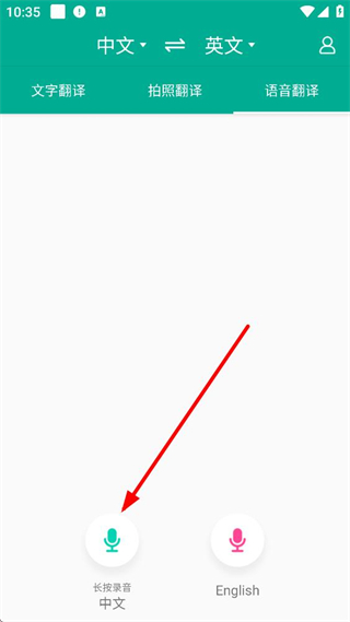 4、語音翻譯功能支持長按錄音中文,也可選擇英文錄音,能將語音內容實時翻譯,便于日常交流中的語言轉換。