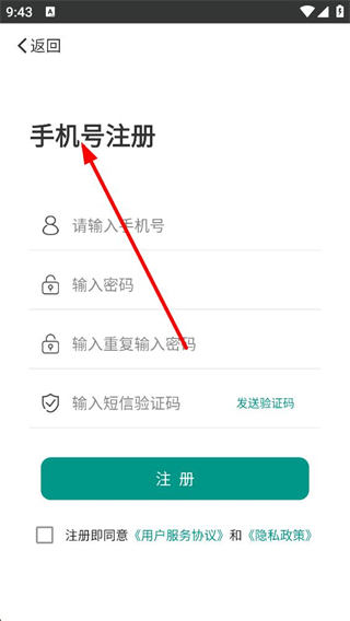 4、手機號注冊需依次填寫手機號、設置密碼并重復輸入,獲取并填寫短信驗證碼后,勾選相關協議,點擊注冊按鈕即可完成賬號注冊流程。
