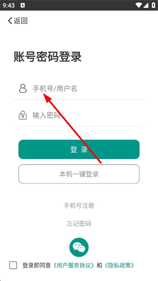 3、賬號密碼登錄頁面需輸入手機號或用戶名及對應密碼,也可選擇本機一鍵登錄,勾選用戶服務協議和隱私政策后,點擊登錄即可進入賬號。