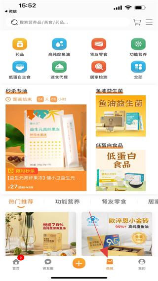 3、商城有藥品、高純度魚油等分類,熱銷益生元果凍、低蛋白食品等,滿足腎病患者飲食與健康需求,商品品類多樣。