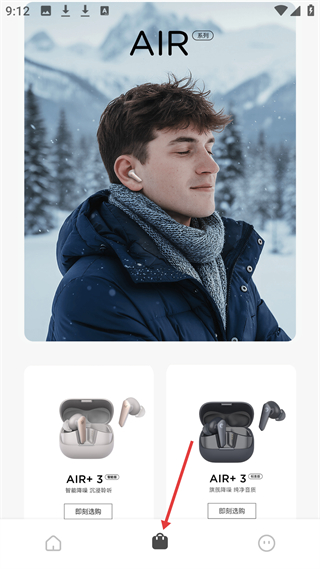 2、產品選購界面,展示AIR系列真無線耳機,有智能版和標準款,具備不同降噪功能,用戶可即刻選購心儀耳機。