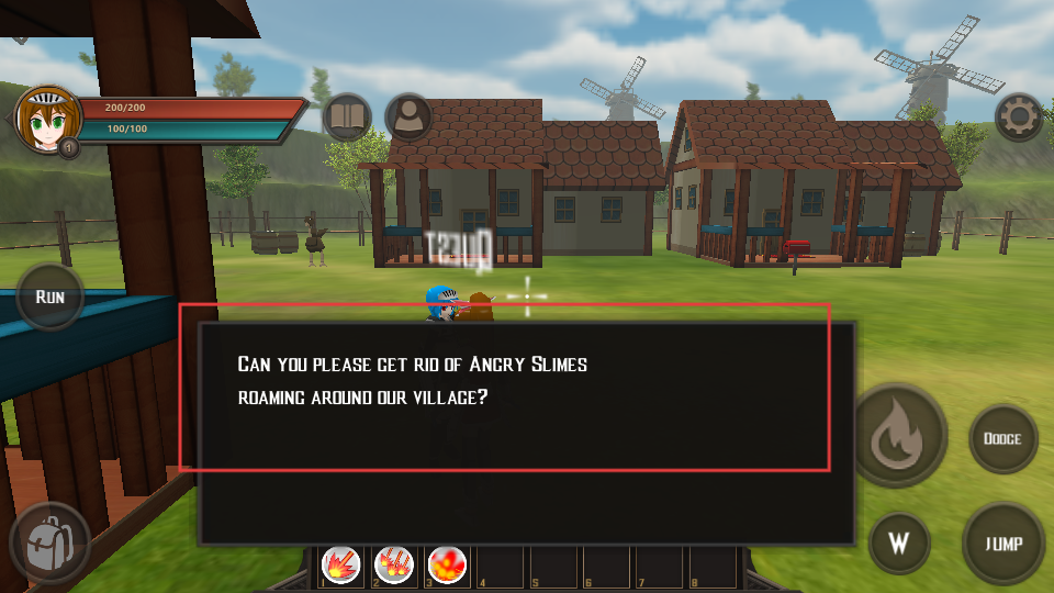3、在村莊等場景中會接到任務,比如清理村莊周圍的憤怒史萊姆,根據任務提示行動。