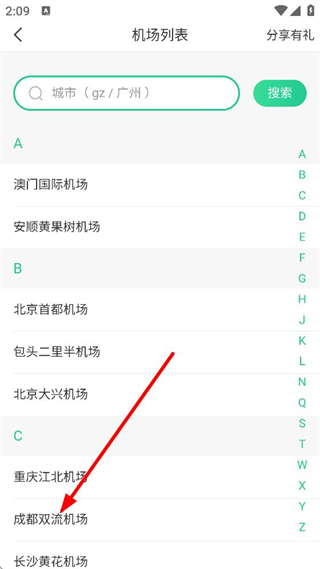 3、進入機場列表界面,搜索框輸入城市,選擇如成都雙流機場等目標機場,進入該機場的停車場信息頁面。