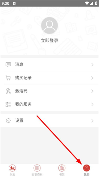 2、點擊底部我的按鈕,進入個人中心界面,可看到立即登錄入口,還有消息、購買記錄等功能選項,便于管理個人相關信息。