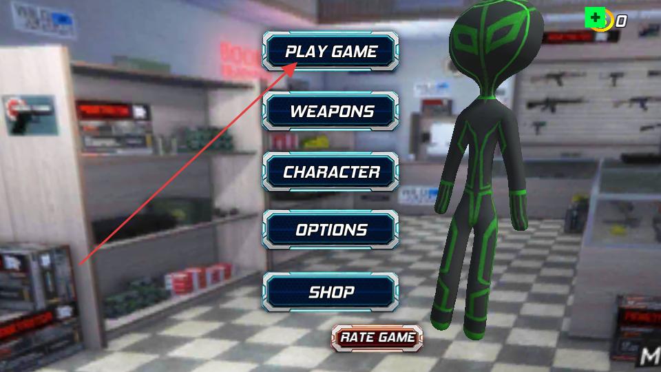 1、進入超音速火柴人游戲,點擊PLAYGAME按鈕,進入都市冒險場景,準備操控火柴人開始冒險。