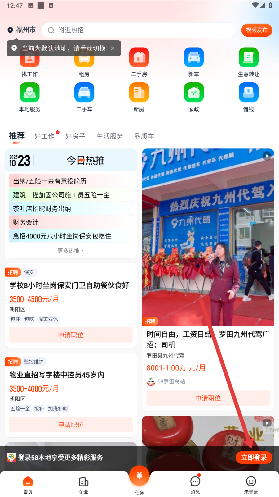 1、打開58本地APP后,首頁點擊右下角立即登錄按鈕,進入登錄界面。
