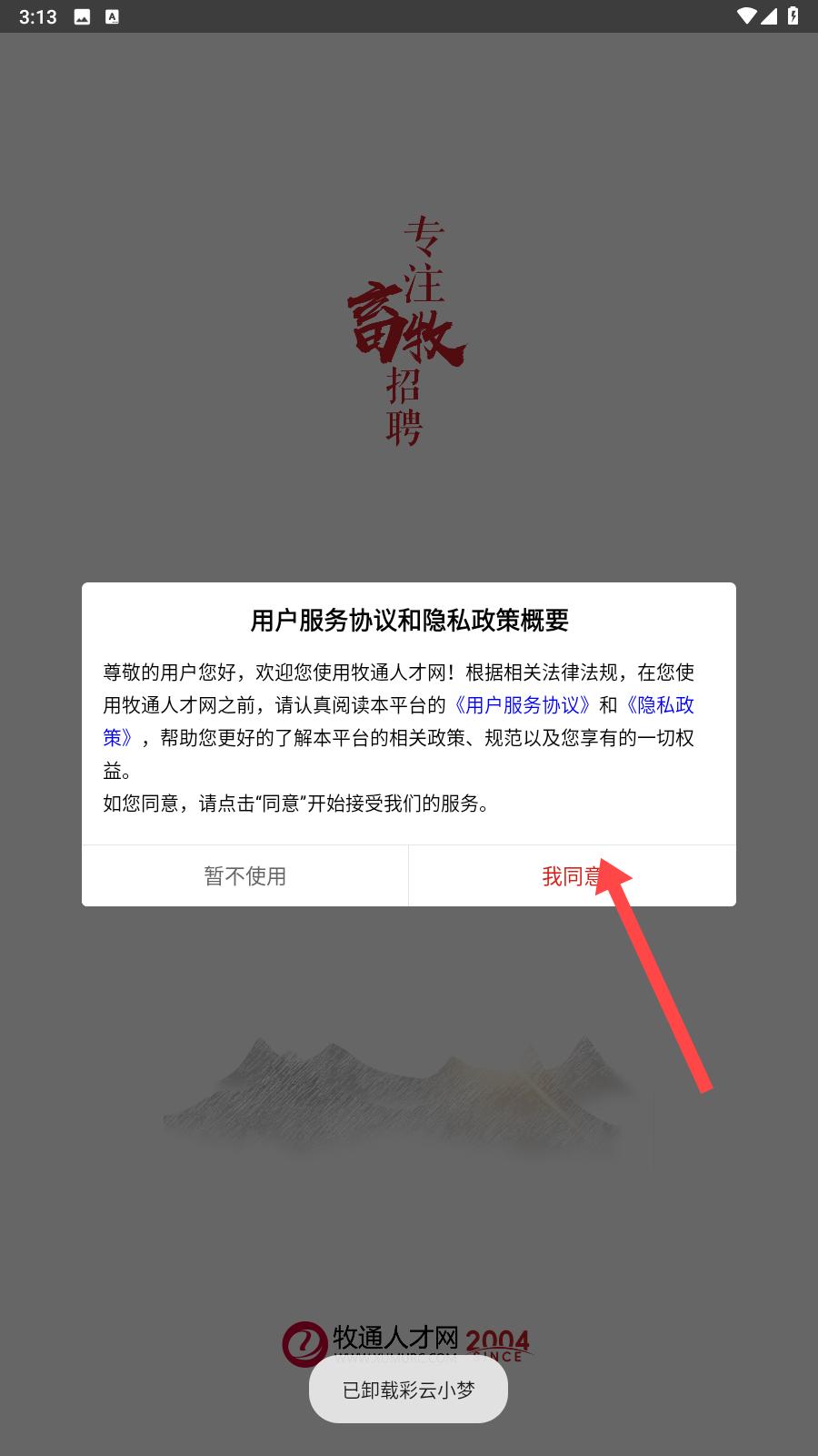 1、進入軟件之后,會跳出服務協議,需要認真閱讀軟件給出的建議后點擊同意并繼續下一步。