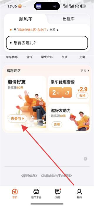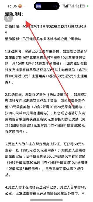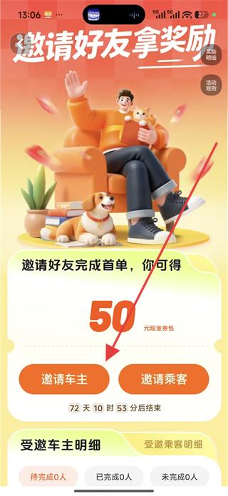 3、查看完活動規則后,選擇邀請車主或邀請乘客,點擊對應的選項,準備邀請好友。