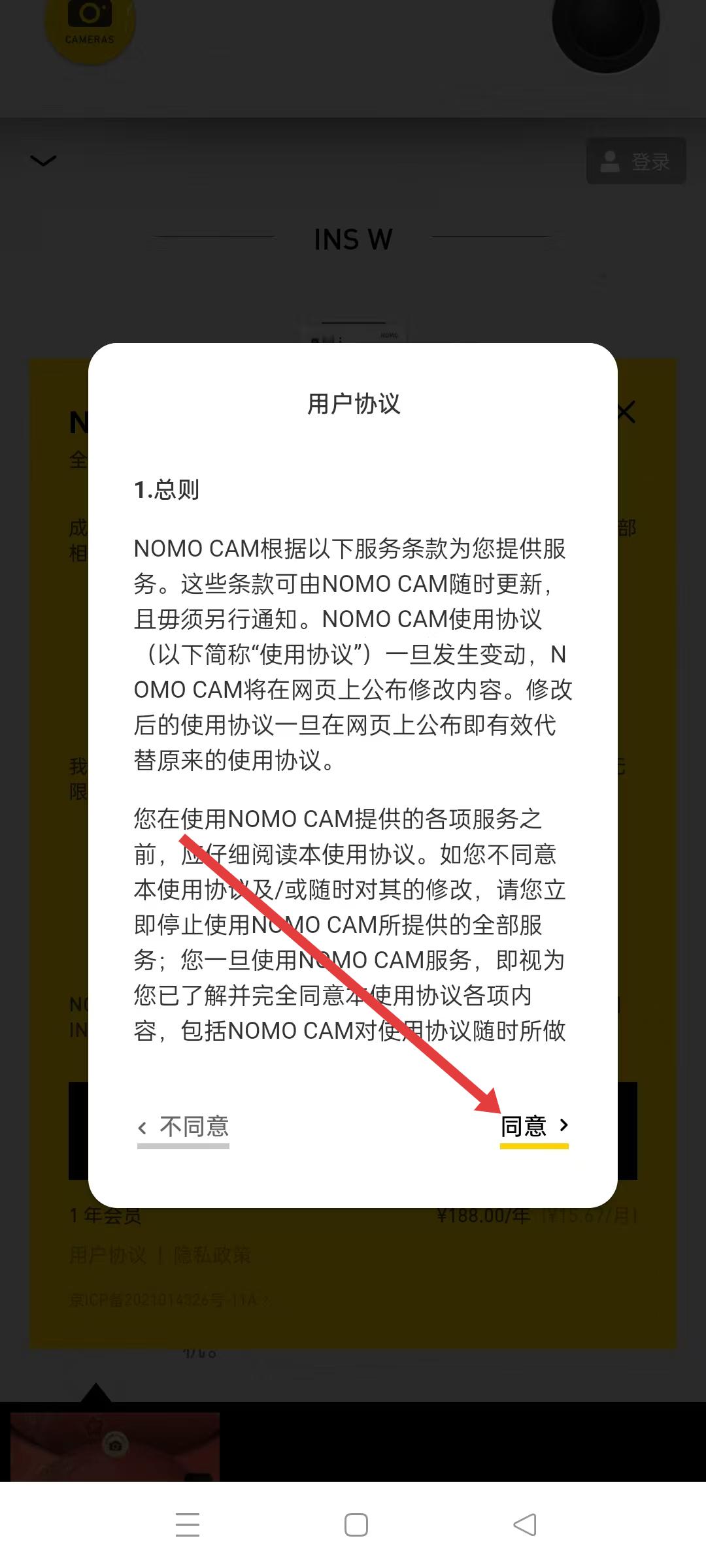 4、開啟會員前,需閱讀并同意用戶協議,協議說明服務條款的更新及用戶使用服務即表示同意的規則,點擊同意即可繼續操作。
