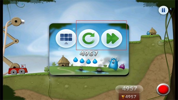 4、成功滅火后如果對成績不滿意,可以點擊綠色旋轉箭頭重新挑戰當前關卡,也可以點擊進入下一關按鈕綠色右箭頭。