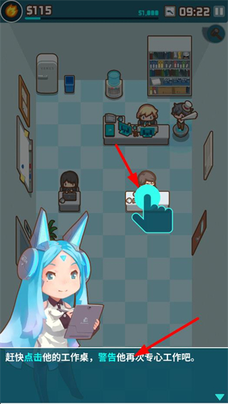 2、趕快點擊他的工作桌警告他再次專心工作吧,點擊對應的工作桌,督促員工專心工作,推進公司的運營流程。