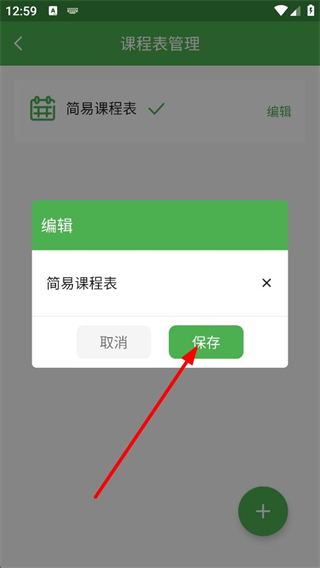4、進入課程表管理界面,可編輯課程表名稱,修改后點擊保存按鈕,即可完成課程表名稱的更新操作,便于區分不同課表。