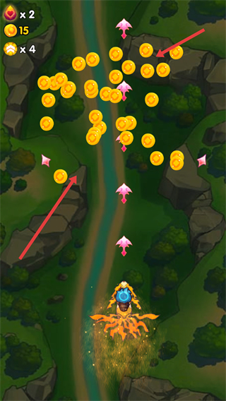 3、擊敗敵人后,場景會出現大量金幣,操控角色移動,收集這些金幣,積累游戲內的資源,為后續游戲助力。