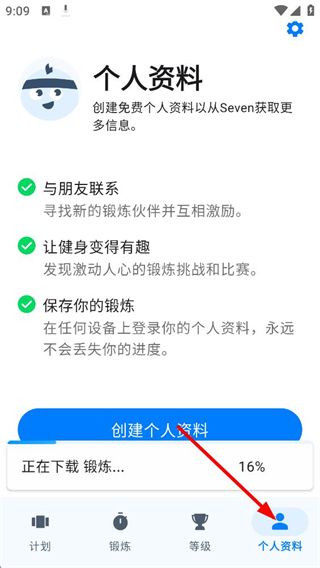 2、個人資料界面,可創建個人資料,創建后能與朋友聯系、讓健身更有趣且保存鍛煉進度,方便在不同設備登錄查看。