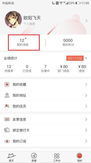 1、進入小紅茂APP我的頁面,點擊我的消息區域,查看業務通知、交互信息,處理待辦溝通事項。