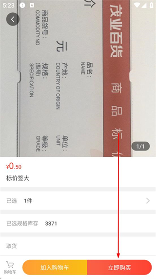 2、在商品列表中選擇標價簽大商品,點擊進入該商品的詳情頁面,查看商品價格庫存等信息,準備進行購買。