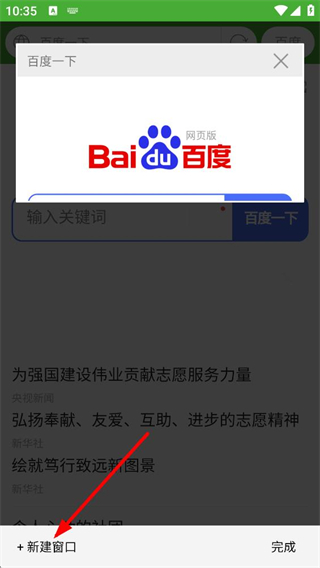 4、百度界面操作時,可點擊相關功能按鈕新建窗口,完成操作后點擊完成按鈕即可確認,助力更靈活地進行多頁面瀏覽與信息檢索。
