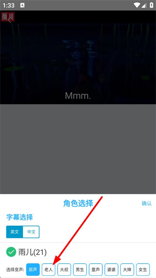 4、進入角色選擇頁面,可先選定字幕語言,再選擇對應的角色,完成選擇后即可開展該素材的配音操作。