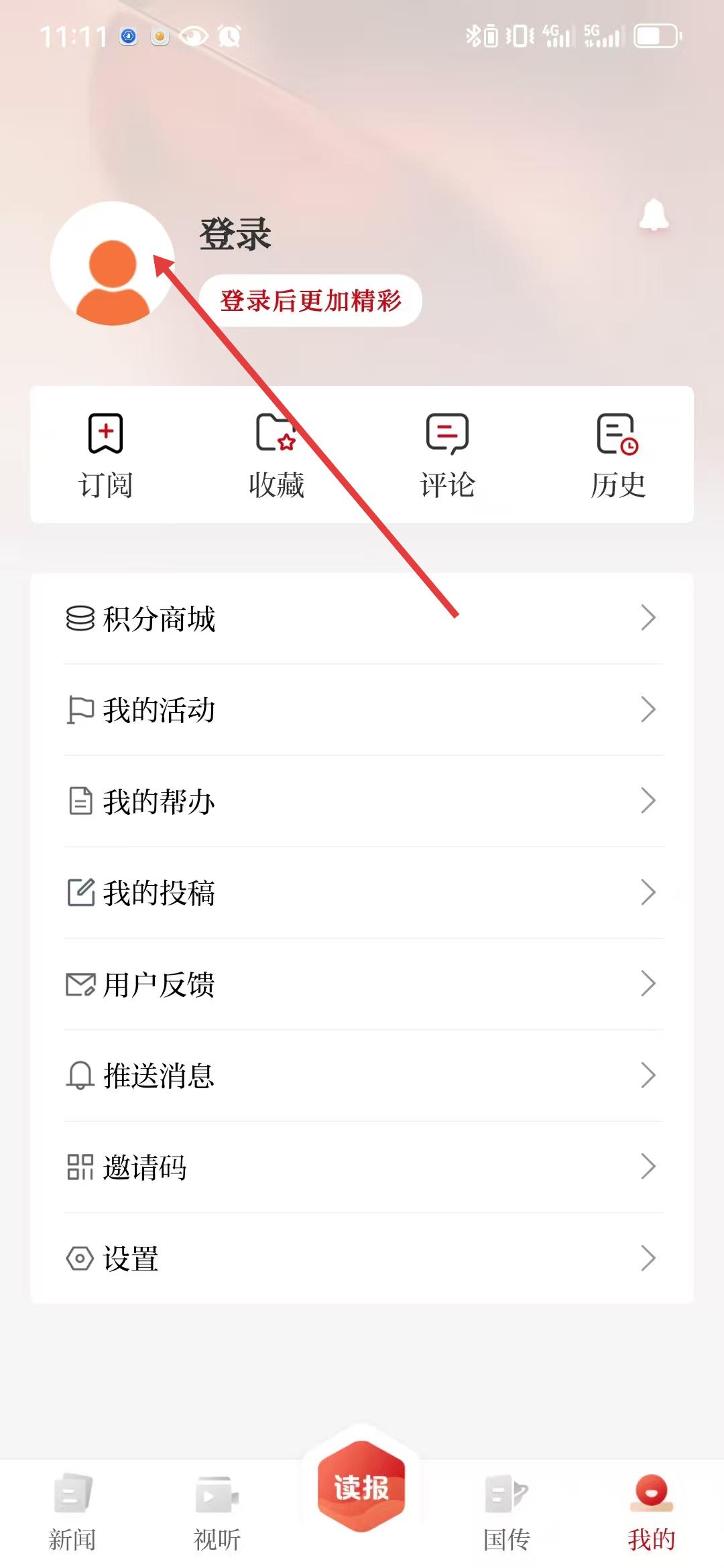 2、我的頁面上方有登錄入口,點擊該入口可開啟注冊登錄流程,登錄后能體驗訂閱、收藏、參與活動等更多精彩功能,是注冊使用客戶端個性化服務的關鍵一步。