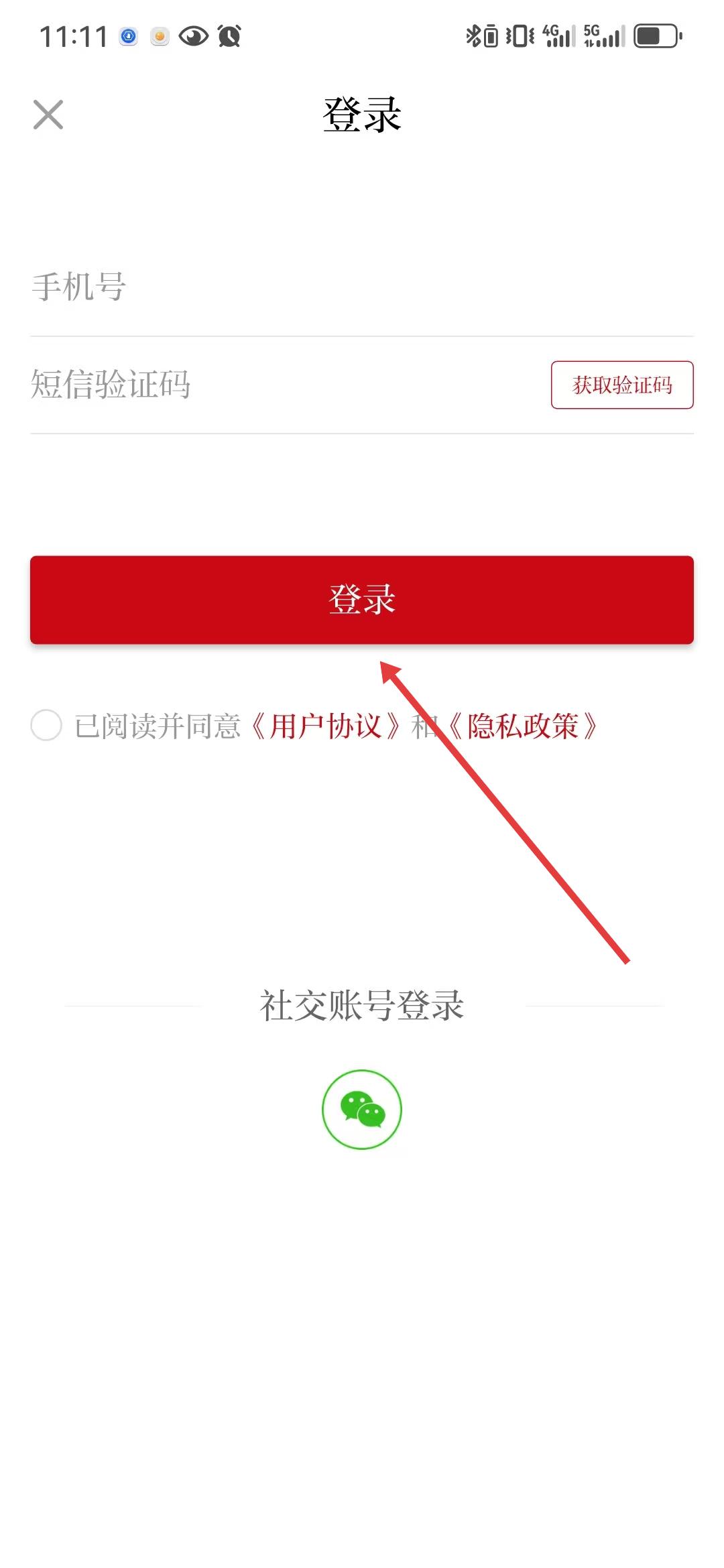 3、在登錄頁面若用手機號注冊,輸入手機號碼、驗證碼,勾選已閱讀并同意協議再點擊登錄,未注冊用戶可自動完成注冊,也可選擇社交賬號快捷登錄。