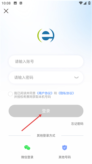 1、進入界面先看到登錄入口,需輸入賬號密碼,勾選同意相關協議后點擊登錄,也可選擇微信或其他號碼等方式完成登錄。