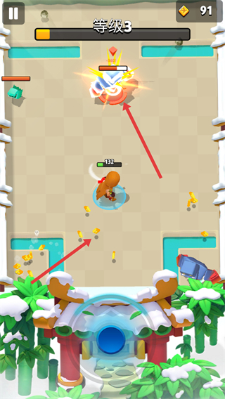 4、在場景里擊敗敵人收集金幣,利用新能力和饋贈效果,持續戰斗冒險,提升等級和實力。