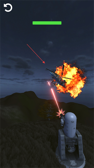 3、鎖定目標后點擊發射按鈕,防空炮會發射炮彈,對空中目標進行打擊成功擊中目標后,目標會發生爆炸等效果。