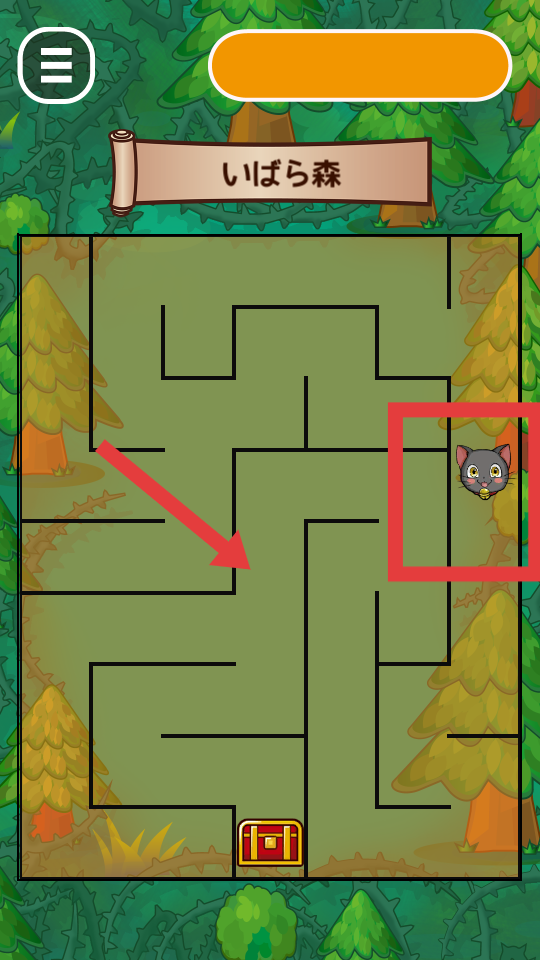3、玩家通過操作小貓咪按照迷宮來行走,直到抵達寶箱的所在的位置地方,即可通關成功。