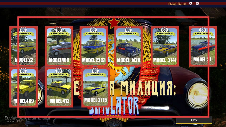 1、進入游戲啟動界面,點擊Play按鈕即可進入蘇聯警察模擬器,開啟警察模擬生涯,體驗蘇聯警察的工作與冒險。