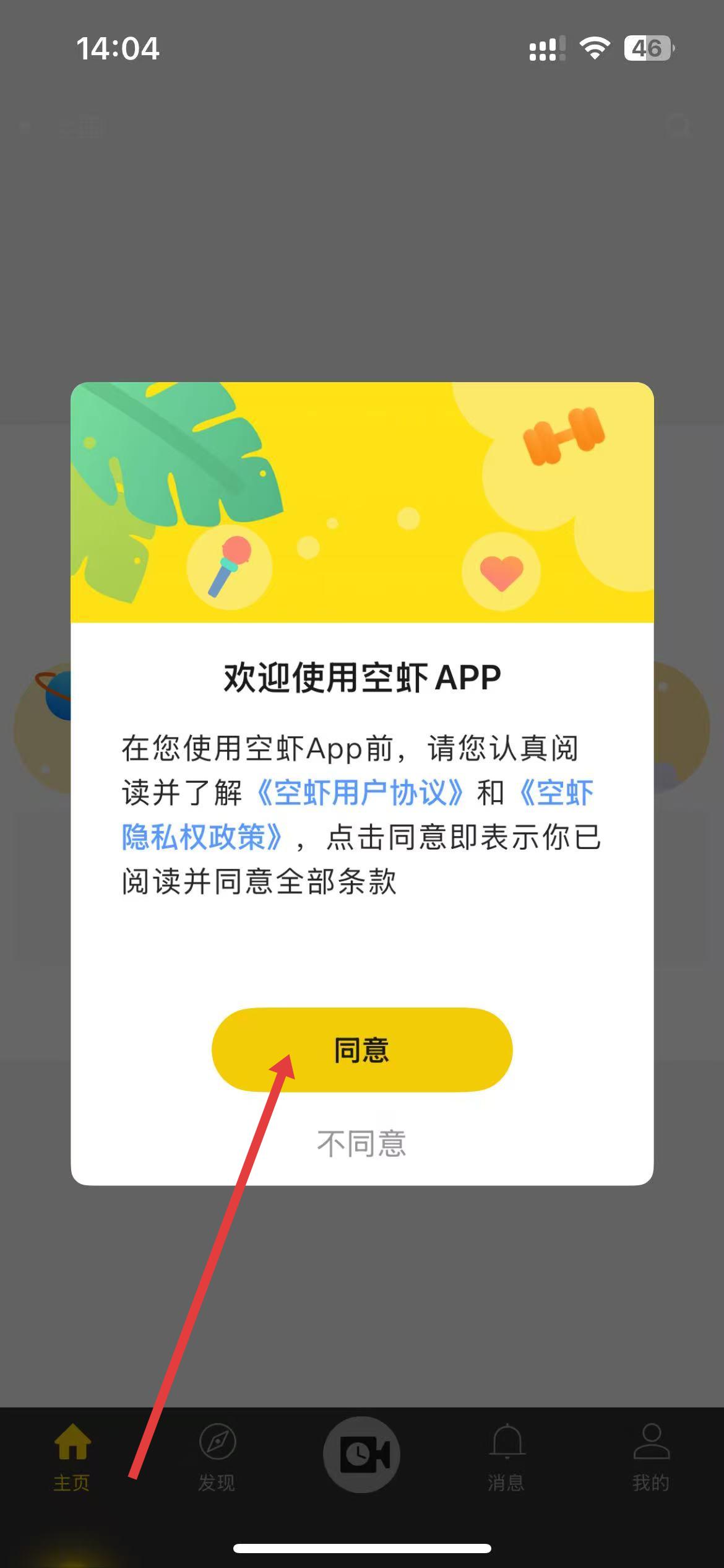 1、打開空蝦APP,在協議彈窗點同意,進入主頁后點我的,再按指引完成初始化,即可開始使用。