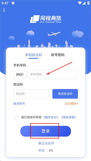 2、在登錄頁面選擇手機驗證碼登錄方式,輸入手機號碼,點擊發送驗證碼,輸入驗證碼后勾選同意協議,點擊登錄按鈕完成登錄。