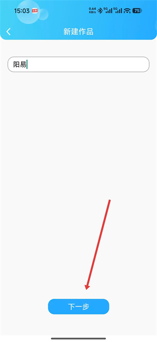 2、在新建作品頁面輸入作品名稱,如陽易,點擊下一步,進入作品創作頁面。