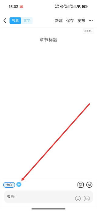 3、在作品創作頁面可選擇氣泡或文字模式,點擊添加按鈕,進入角色設置頁面。