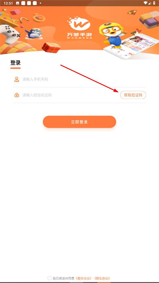 3、登錄頁面,輸入手機號碼并獲取短信驗證碼,點擊立即登錄,完成賬號登錄操作。