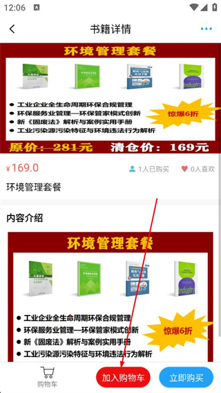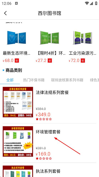 3、在西爾圖書館頁面,瀏覽各類環保書籍,選擇環境管理套餐書籍點擊進入,查看該書籍的價格及簡介信息。