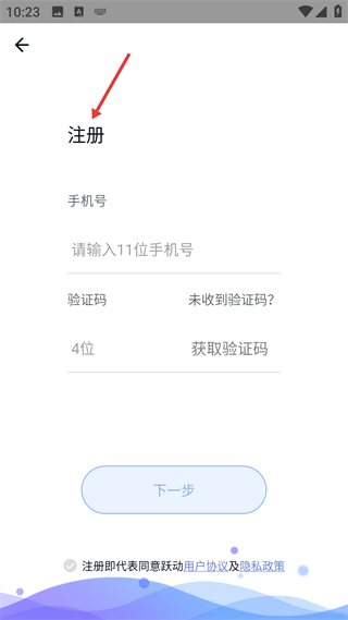 2、注冊頁需填寫11位手機號并獲取驗證碼,勾選協議后點下一步完成注冊,是新用戶開通賬號的必要操作步驟。