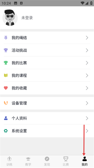 4、個人中心頁包含繩結挑戰課程等功能,還有設備管理資料設置選項,是管理個人信息與功能權限的核心模塊。