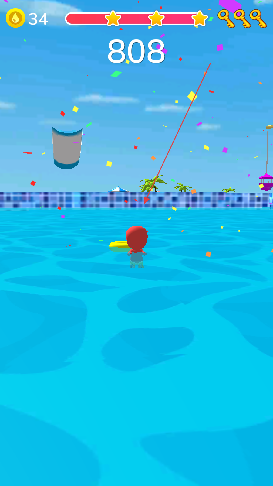 4、操控游泳圈順利滑過整個水上滑梯賽道,最終抵達終點泳池,完成比賽,此時會顯示最終得分等信息,也獲得一定的獎勵。