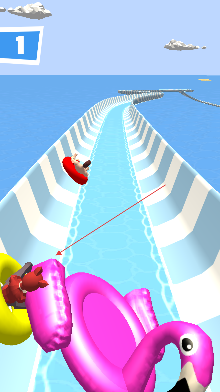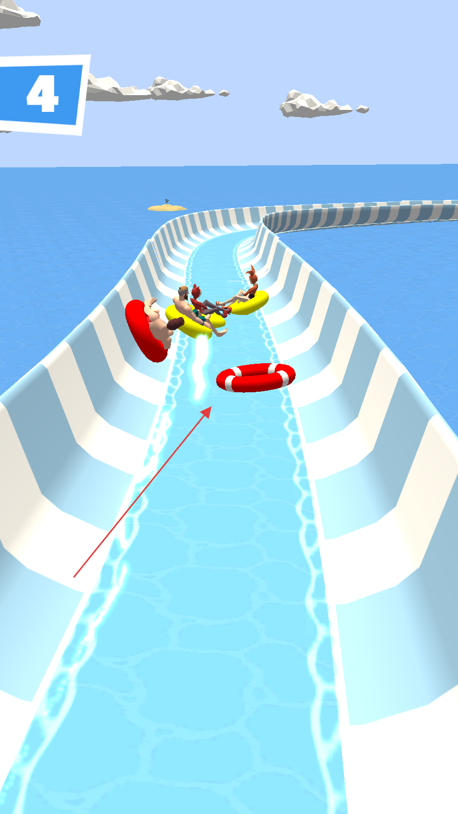 2、在滑行過程中通過觸摸屏幕等操作方式,控制乘坐的游泳圈或充氣玩具的滑行方向,躲避其他玩家和障礙物,選擇更順暢的滑行路線。