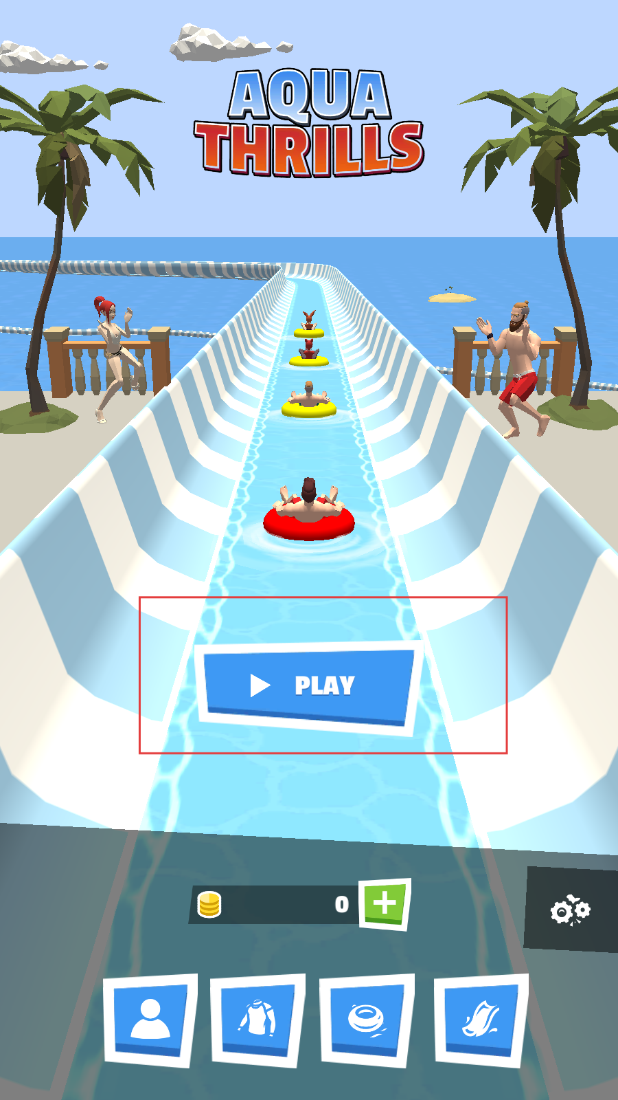 1、玩家下載游戲在游戲界面點擊PLAY按鈕,即可進入水上滑梯公園的游戲場景,開啟滑行挑戰。