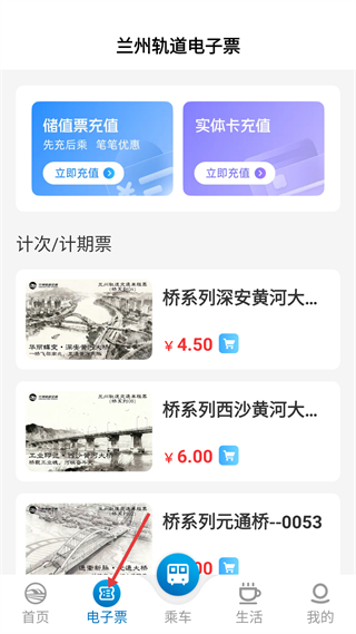 2、電子票頁面支持儲值票、實體卡充值,提供橋系列等帶本地文化元素的定制票卡,滿足不同出行票務需求。