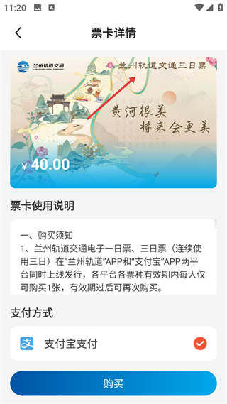 4、三日票融入蘭州黃河文化元素,售價40元可連續使用3天,雙平臺發行,每人每期僅能購買1張。