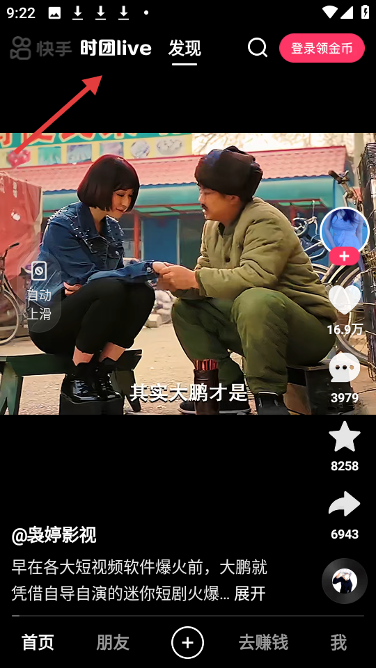 1、快手發現頁裊婷影視的作品展示著人物互動畫面,上方醒目提示登錄領金幣,便捷操作可隨心互動。