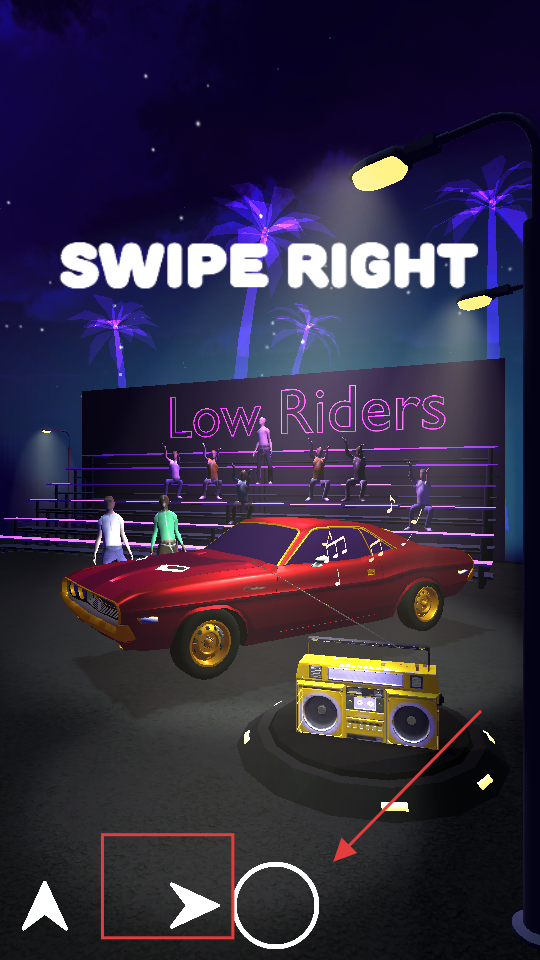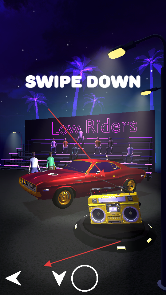 4、當看到SWIPE DOWN向下滑動提示時,向下滑動屏幕,使賽車或相關元素做出向下的動作,遵循游戲的操作指引。