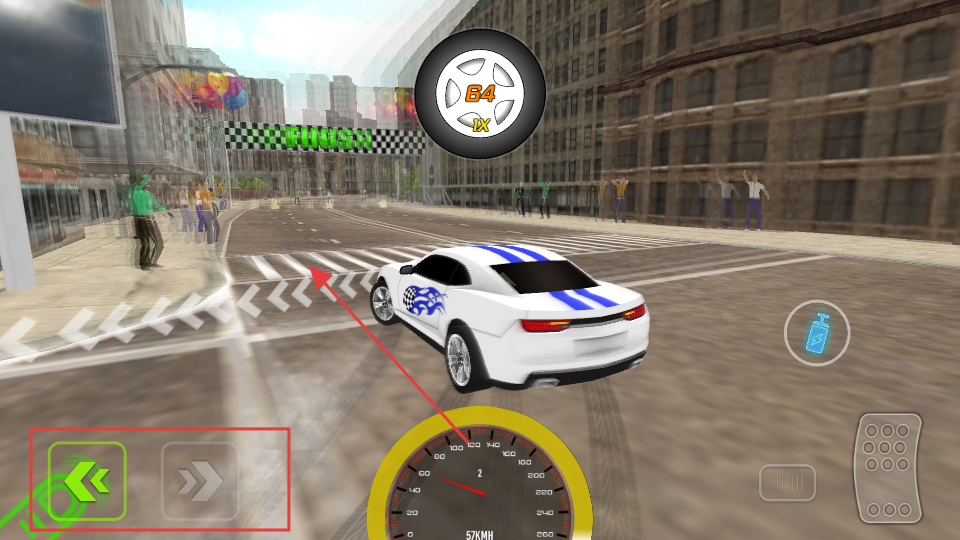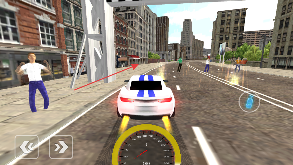 1、游戲中通過點擊屏幕左側的左右箭頭按鈕,控制汽車的行駛方向,讓汽車在城市道路上靈活轉向,躲避行人與障礙物,規劃行駛路線。