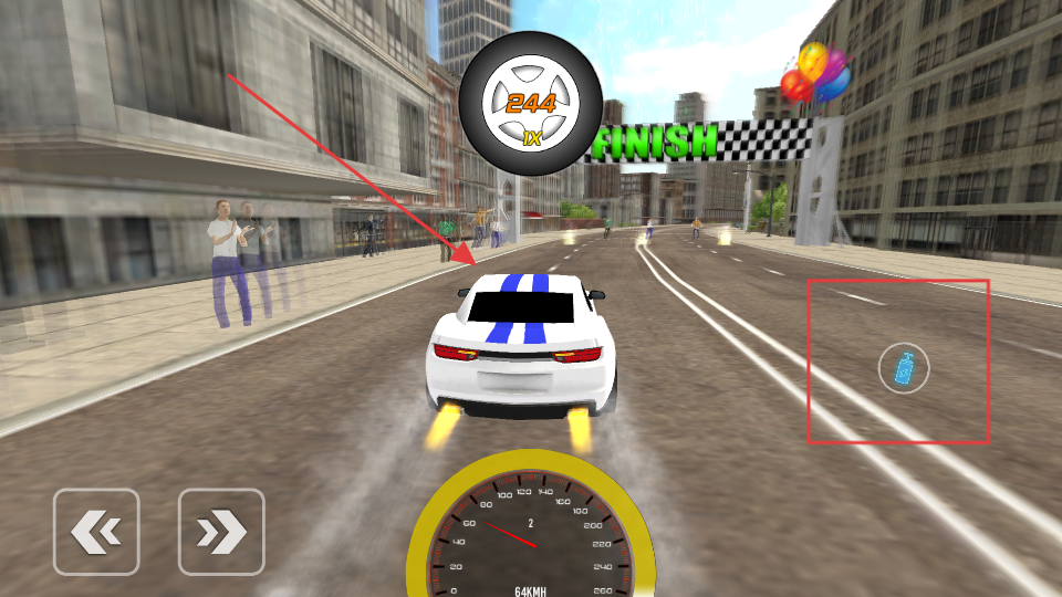 3、游戲的藍色瓶子狀是加速道具,玩家可短暫提升汽車速度,助力更快通過賽道,在競速過程中占據優勢。