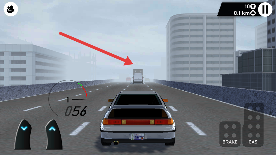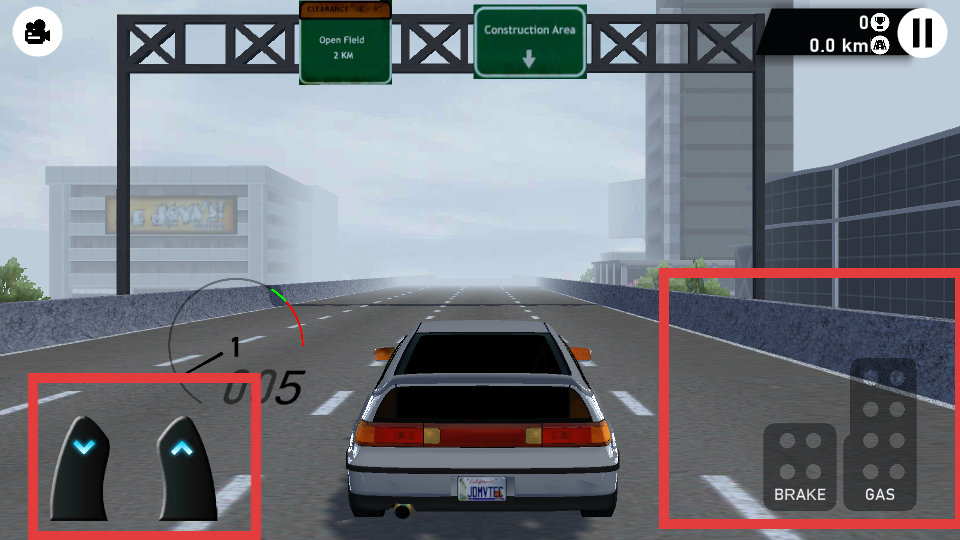 3、進入游戲后通過屏幕右側的剎車和GAS油門按鈕控制車輛的減速與加速,左側的方向按鈕控制車輛轉向。