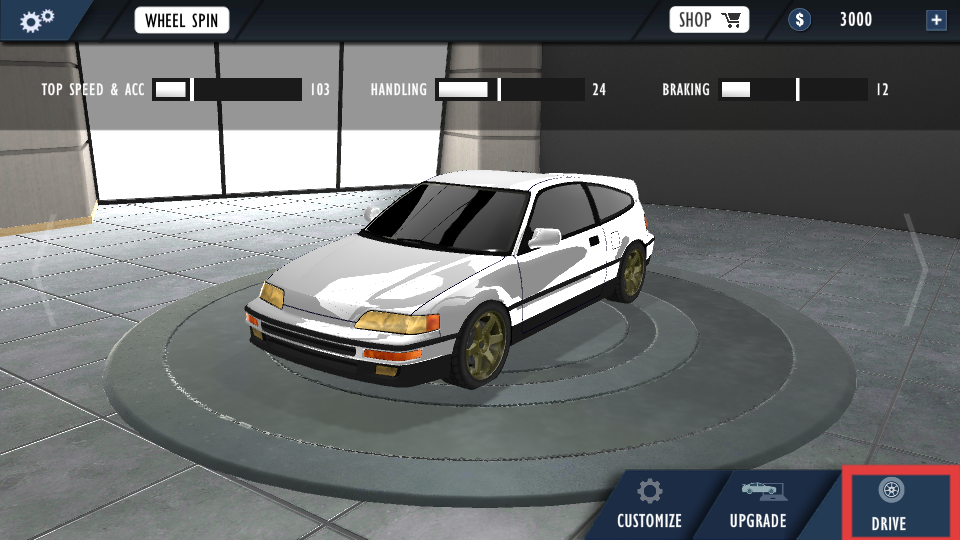 1、在車庫界面可利用游戲內的貨幣對車輛的最高速度與加速度等性能進行升級,提升車輛在賽道上的表現,玩家點擊圖標標記進入游戲。